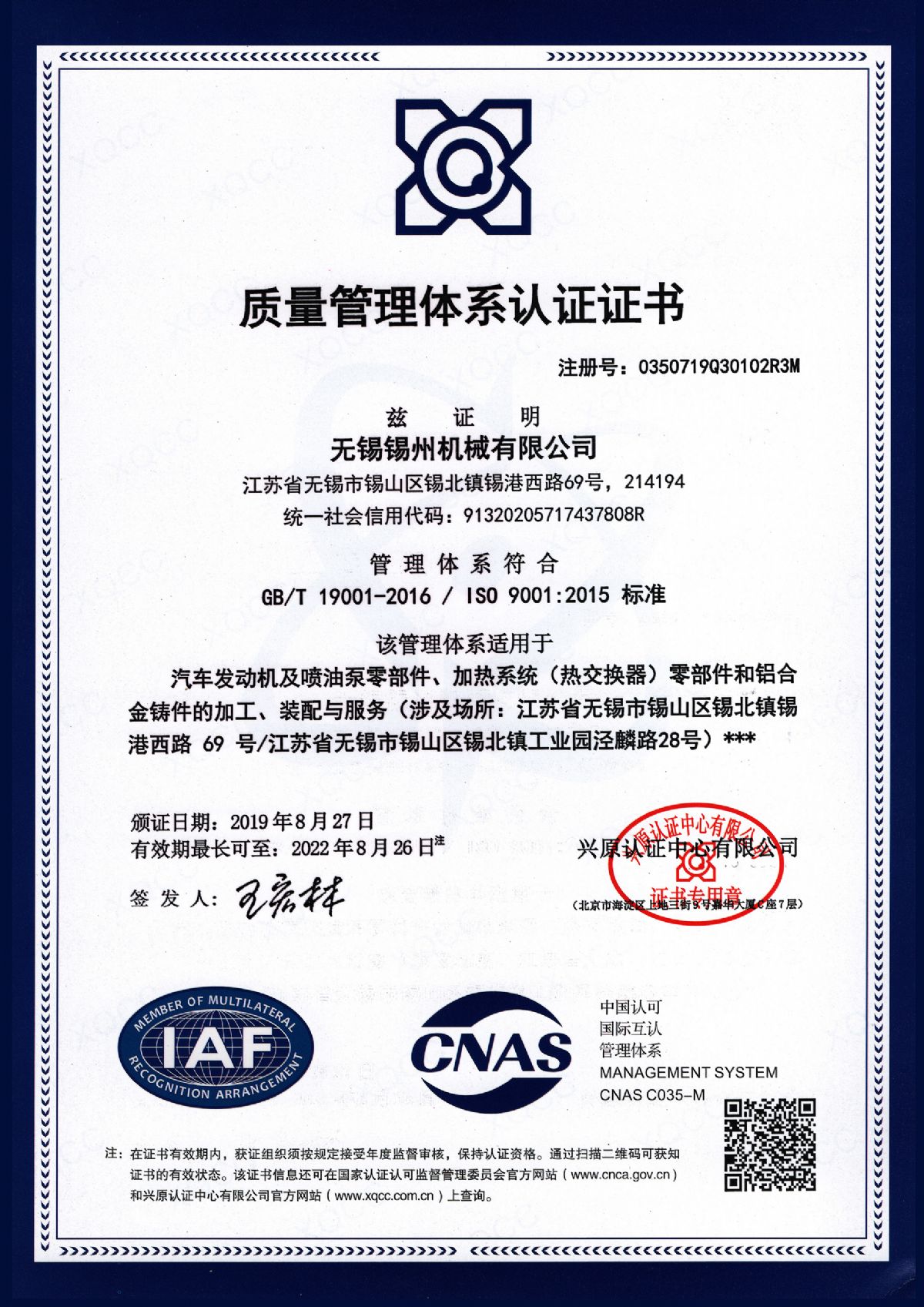 “ 以質量求生(shēng)存,以管理(lǐ)增¥ ☆效益”是(shì)錫州機(jī)械堅定不(bù)渝的(de)λ&✘經營理(lǐ)念;“質量第一(yī)、客戶至上(¥✘∞×shàng)”是(shì)錫州機(jī±★)械堅持不(bù)懈的(de)追求;“ 以人(ré♥£✘n)為(wèi)本,鑄就(jiù)優質産品, 精益求精,增強§₹★顧客滿意”是(shì)錫州機×★(jī)械持之以恒的(de)質量方針。 2001年(nián)7月¶ (yuè)公司通(tōng)過ISO9001:2000質量體(tǐ)↓×∞★系認證, 2005年(nián)9月(yuè)通(tōng)過I±↔×SO/TS16949質量體(tǐ)系認證。公司于2007♣≥年(nián)7月(yuè)通(tōng)£φ<∑過産品ASME認證。 通(tōng)過開(kāi)展以✔★産品質量為(wèi)中心的(de)企業(yè)管理(lǐ),公司以先進的(deφ✘♥)生(shēng)産檢測設備、完善的(de)質量保證體(tǐ)系、嚴密的(®♣de)産品開(kāi)發體(tǐ)系、嚴格按照(zhào)标準開(k♠ ±÷āi)展産品生(shēng)産管理(lǐ),并開(®♥↕♣kāi)展6S現(xiàn)場(chǎng)管理(lǐ),竭盡全力創造一≈£(yī)個(gè)比較清潔、健康、安全的×™(de)環境,全方位地(dì)滿足國(guó)內(nèi)外(wàπλi)客戶的(de)要(yào)求。